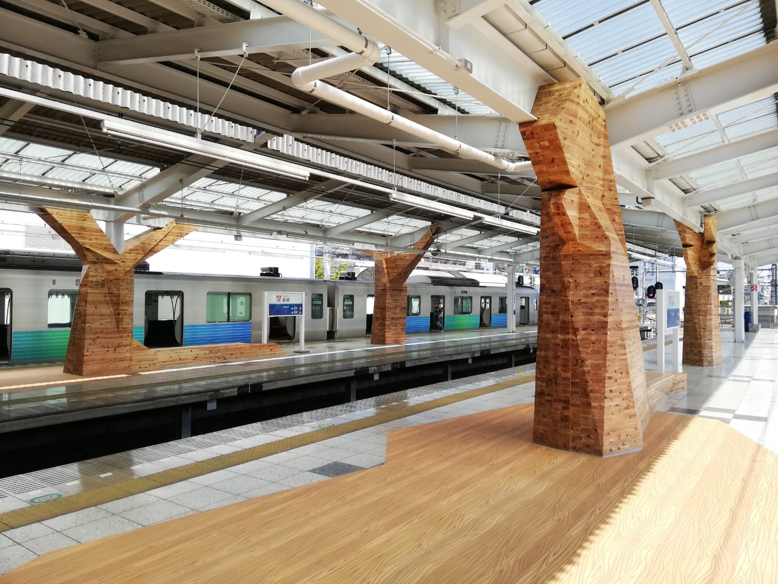 Hannon rautatieaseman face-lift, Japani, 2017. Kilpailuvoitto.